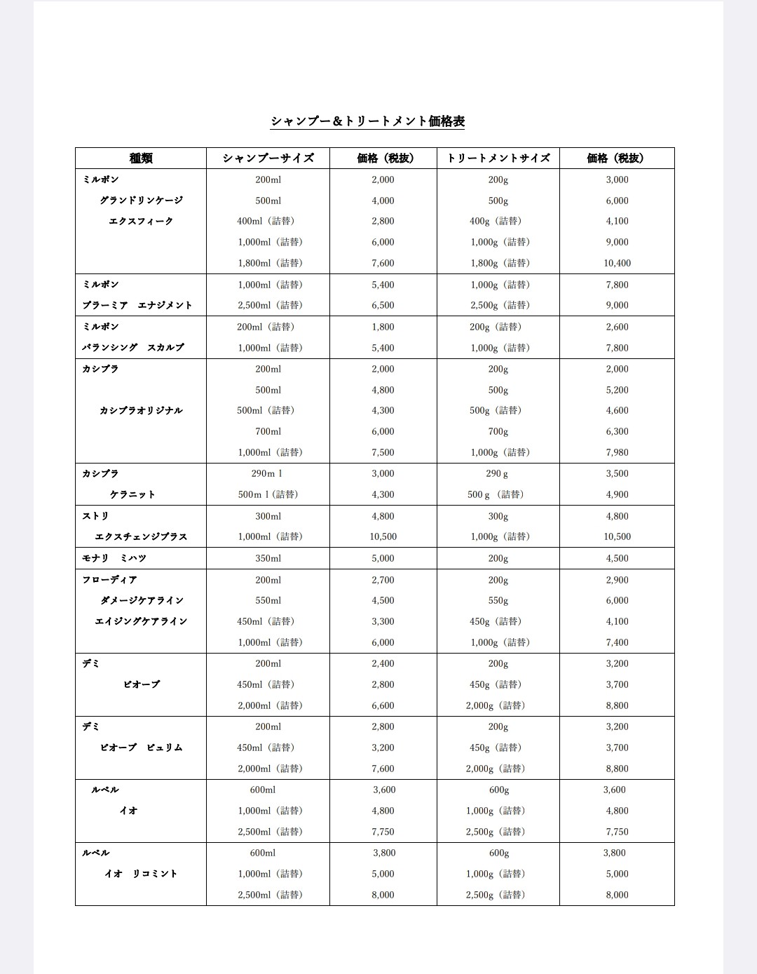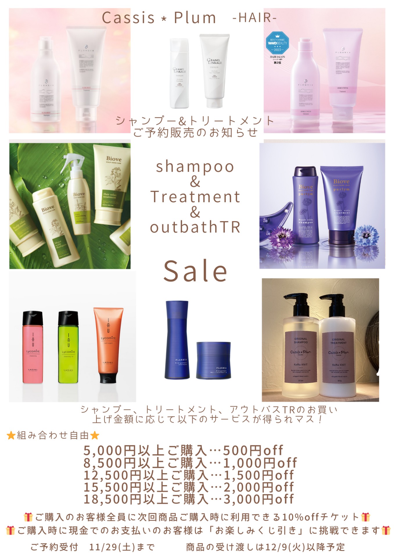 シャンプーやトリートメント、アウトバストリートメントは組合せ自由になっております。